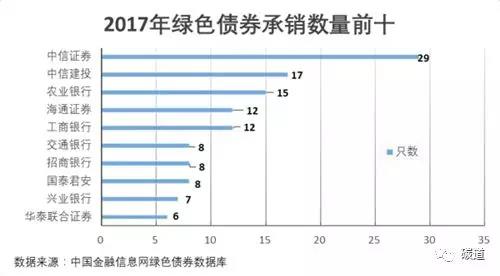 中國證券業(yè)協(xié)會發(fā)布2017年證券公司債券承銷業(yè)務(wù)專項統(tǒng)計顯示,2017年全年,22家證券公司作為綠色債券主承銷商或綠色資產(chǎn)證券化產(chǎn)品管理人(滬深交易所市場)共承銷發(fā)行22只產(chǎn)品,合計金額302.09億元,其中發(fā)行資產(chǎn)證券化產(chǎn)品5只67.94億元。
