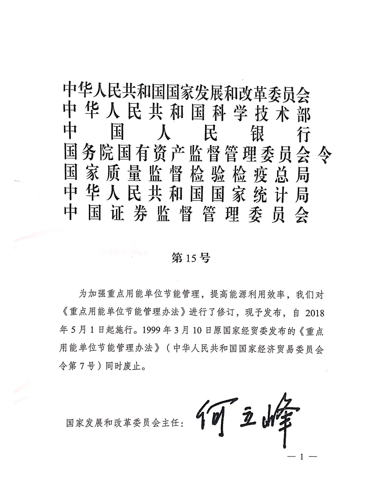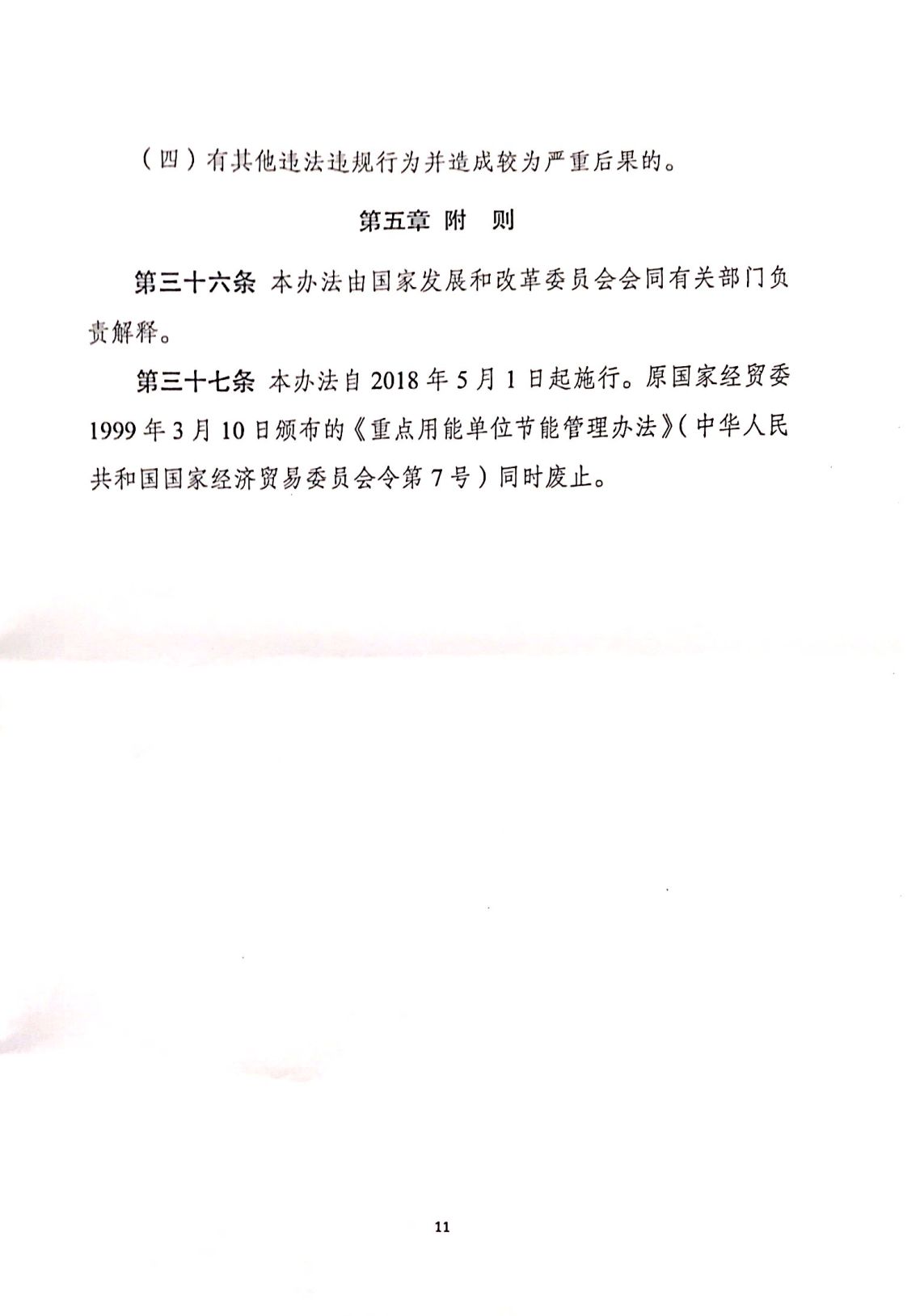 7.本辦法自2018年5月1日起施行,原國(guó)家經(jīng)貿(mào)委1999年3月10日頒布的《重點(diǎn)用能單位節(jié)能管理辦法》(中華人民共和國(guó)國(guó)家經(jīng)濟(jì)貿(mào)易委員會(huì)令第7號(hào))同時(shí)廢止。