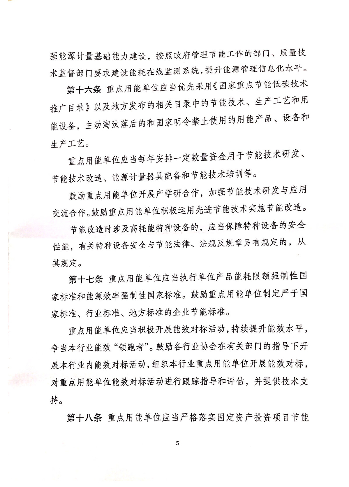 5.重點(diǎn)用能單位應(yīng)當(dāng)優(yōu)先采用《國(guó)家重點(diǎn)節(jié)能低碳技術(shù)推廣目錄》以及地方發(fā)布的相關(guān)目錄中的節(jié)能技術(shù)、生產(chǎn)工藝和用能設(shè)備,主動(dòng)淘汰落后的和國(guó)家明令禁止使用的用能產(chǎn)品、設(shè)備和生產(chǎn)工藝。