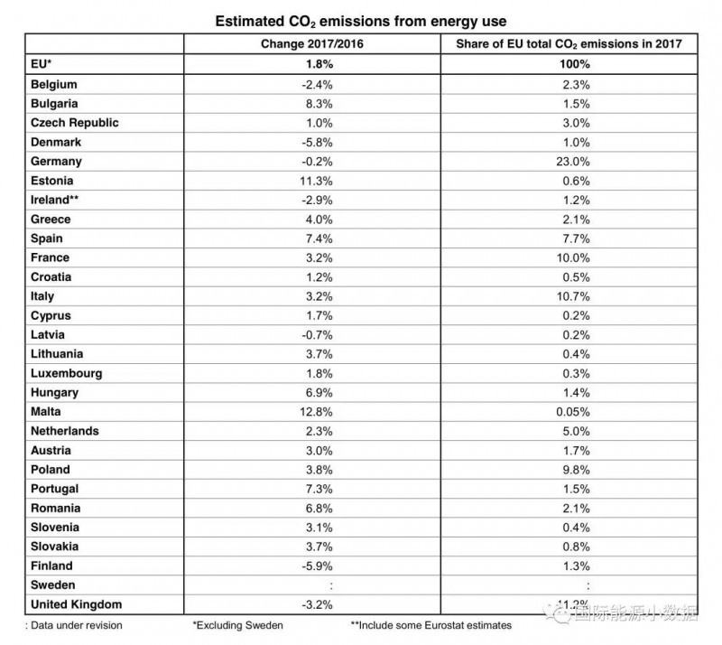 根據(jù)Eurostat剛剛發(fā)布的數(shù)據(jù),2017年歐盟國(guó)家能源相關(guān)的碳排放比2016年增長(zhǎng)1 8%。