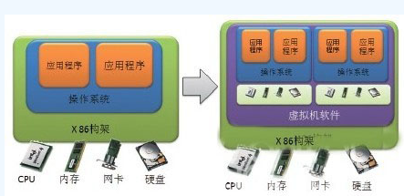 隨著IT技術(shù)的發(fā)展,計算機的CPU內(nèi)核越來越多,內(nèi)存也越來越大,虛擬機平臺可以為每一個運行的虛擬機分配CPU及內(nèi)存資源,在一個虛擬機平臺上同時運行多個虛擬機系統(tǒng),從而更充分地利用CPU及內(nèi)存資源。