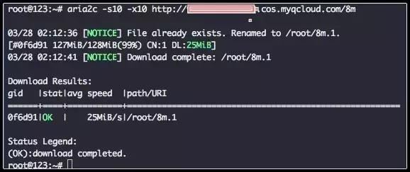 騰訊云在多線程下載上,也有所遺憾,速度只達到了25MB/S