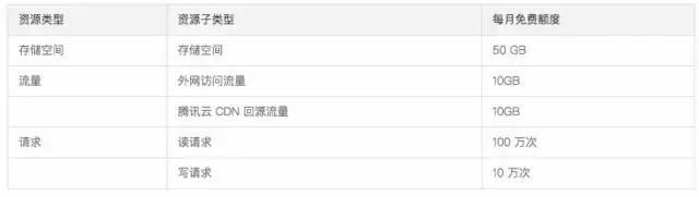 騰訊云提供了免費的額度。涵蓋了空間存儲、流量以及請求次數(shù)。