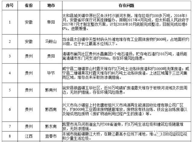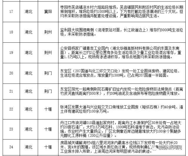5月9日,“清廢行動(dòng)2018”督查組在各地全面開展摸排核實(shí)工作,共摸排核實(shí)372個(gè)固體廢物堆存點(diǎn)位,發(fā)現(xiàn)208個(gè)堆存點(diǎn)存在問題,生態(tài)環(huán)境部對比較突出的24個(gè)問題實(shí)施掛牌督辦,督促地方限期整改,其余問題直接交當(dāng)?shù)卣幚怼?/p>