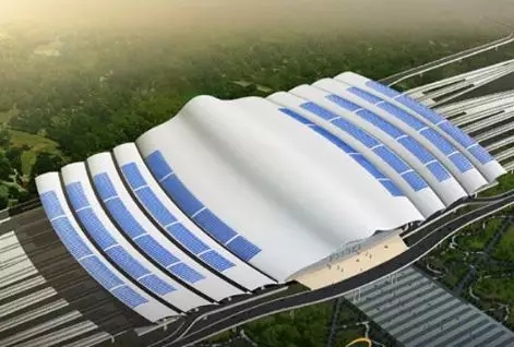 LED或者廣告牌的效果,西面的墻壁也采用同樣的方式,雖然發(fā)電量會有所降低,但是總的來說,外墻薄膜加上屋頂光伏產(chǎn)生的能源量還是非常大的。