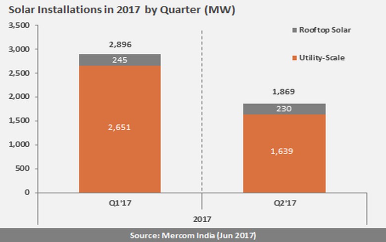 根據(jù)Mercom印度研究公司,2017年上半年印度新增4765兆瓦太陽(yáng)能容量,并且正在實(shí)現(xiàn)全年10500兆瓦新增光伏電站的目標(biāo)。