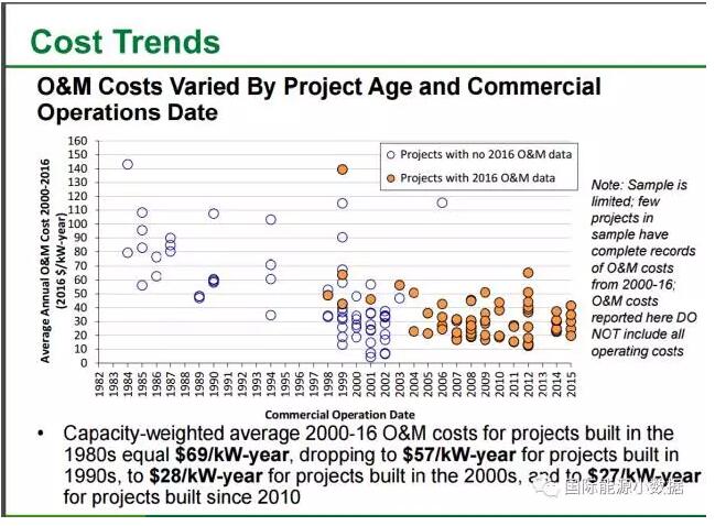 # 2000年以后新建的風(fēng)機(jī)運(yùn)行維護(hù)成本平均約為27美元/千瓦-年。