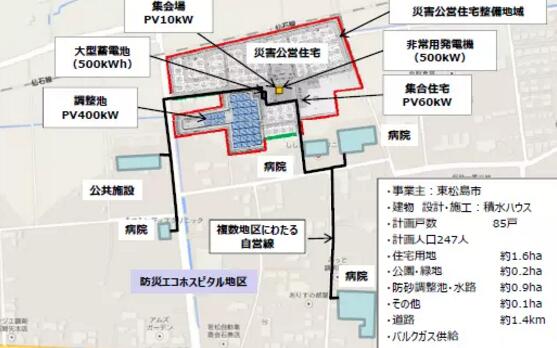 在 4 萬(wàn)人口的東松島市,新型電網(wǎng)的鋪設(shè)與災(zāi)害公營(yíng)住宅建設(shè)同時(shí)進(jìn)行。日本最大的住宅建造商之一,積水房屋株式會(huì)社也參與其中,共同建設(shè)了智能防災(zāi)小鎮(zhèn)。