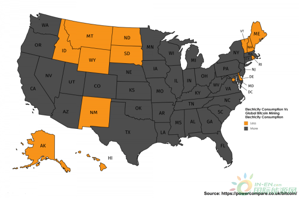 比特幣挖礦已經(jīng)比美國(guó)12個(gè)州(阿拉斯加、夏威夷、愛(ài)達(dá)荷州、緬因州、蒙大拿州、新罕布什爾州、新墨西哥州、北達(dá)科他、羅德島、南達(dá)科他、佛蒙特州和懷俄明州)消耗的電力都多;