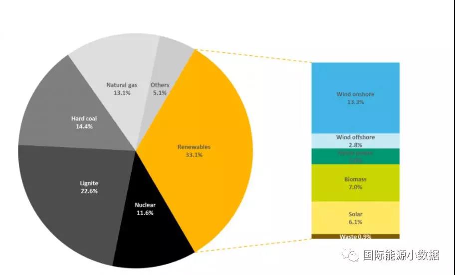 ——2017年德國發(fā)電量中的33%來自可再生能源能源,比上一年增長4個(gè)百分點(diǎn)。