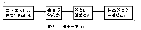 在獲得了消化道結(jié)構(gòu)的外形輪廓后,采用matlab編程方法單獨(dú)提取出消化道結(jié)構(gòu),最后采用Bitplane公司的Imaris三維重建軟件對(duì)分割好的消化道結(jié)構(gòu)進(jìn)行三維重建,然后輸出東亞飛蝗消化道的三維模型。在重建的過程中,根據(jù)軟件對(duì)標(biāo)尺的校正,以圖像實(shí)際像素和切片的層距進(jìn)行計(jì)算,將X,Y,Z坐標(biāo)軸的比例設(shè)置為1:1:6,得到東亞飛蝗消化道結(jié)構(gòu)的三維模型。圖3給出三維重建過程流程。