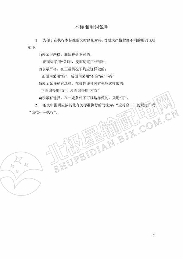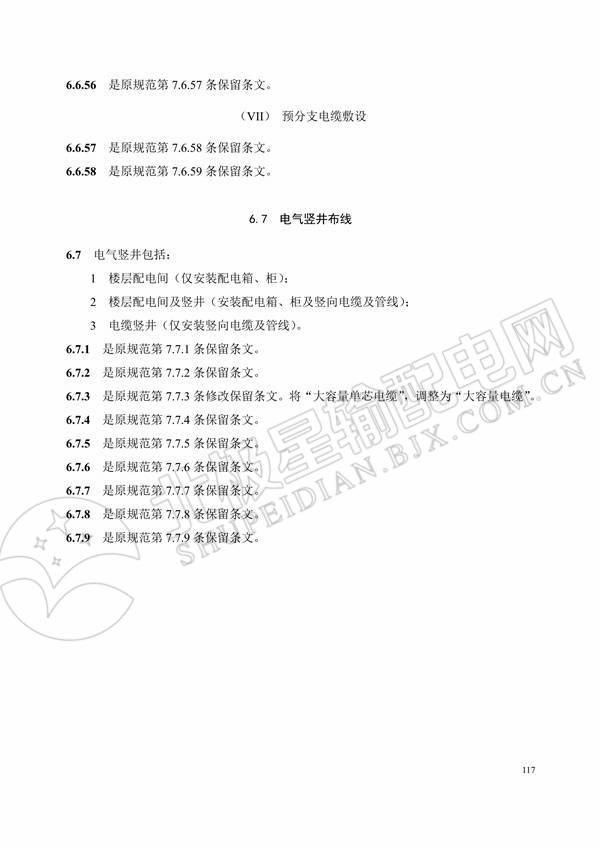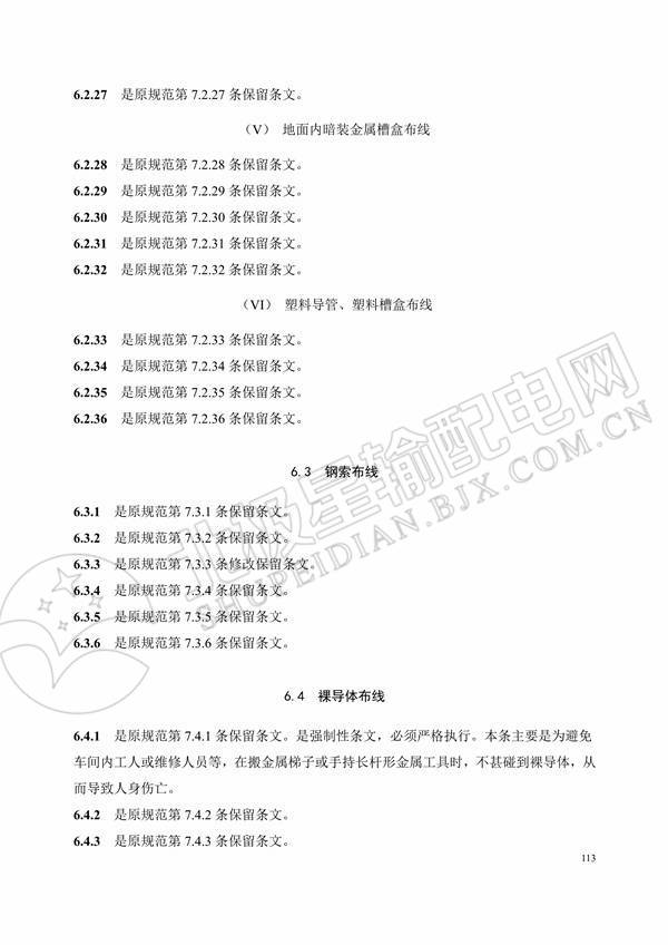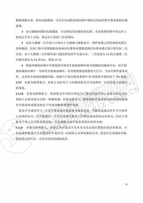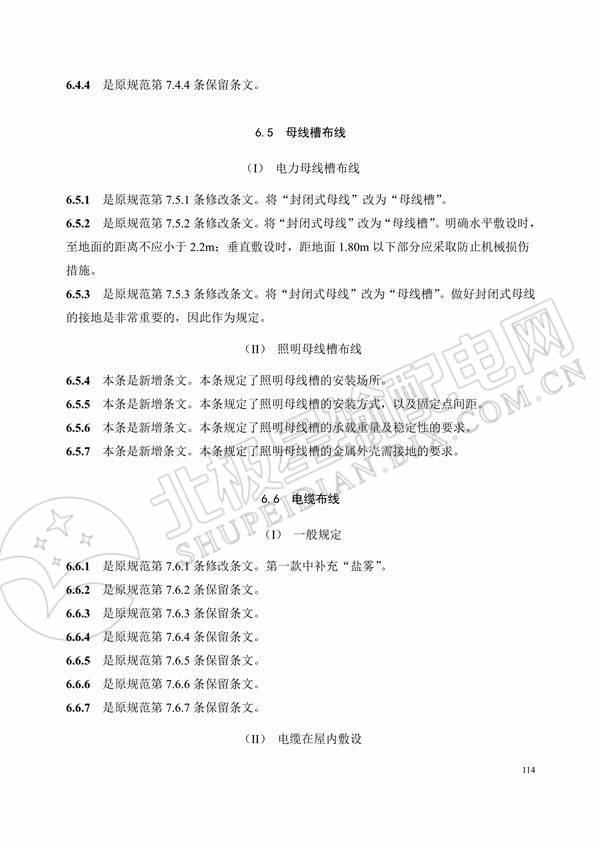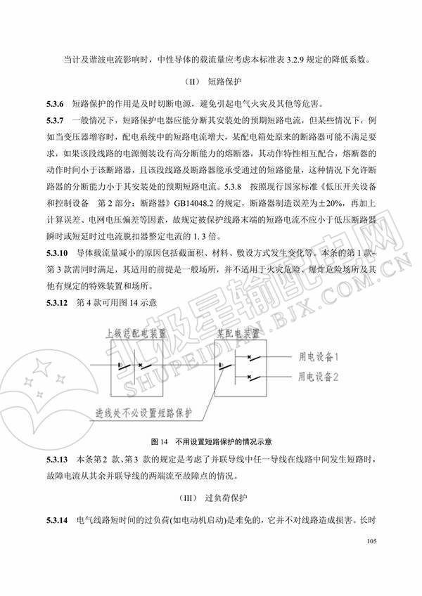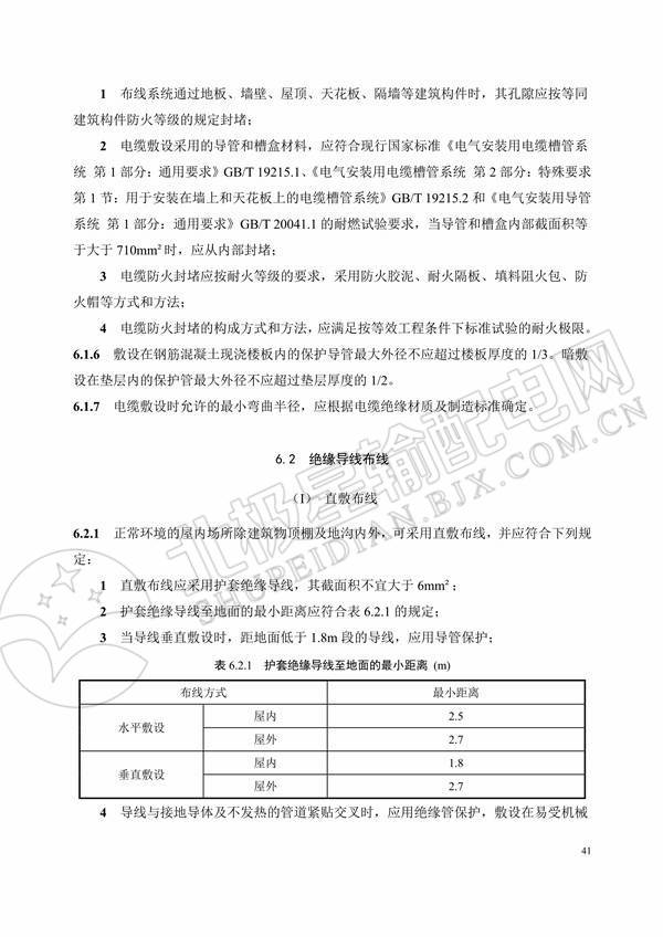 本標(biāo)準(zhǔn)共分六章和2 個(gè)附錄,主要技術(shù)內(nèi)容包括:總則、術(shù)語(yǔ)、電器和導(dǎo)體的選擇、配電裝置的布置、安全防護(hù)、配電線路的敷設(shè)等。