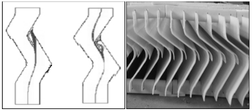 圖6:不同粒徑霧滴在除霧器中的湍流效應(yīng)及除霧器實物圖