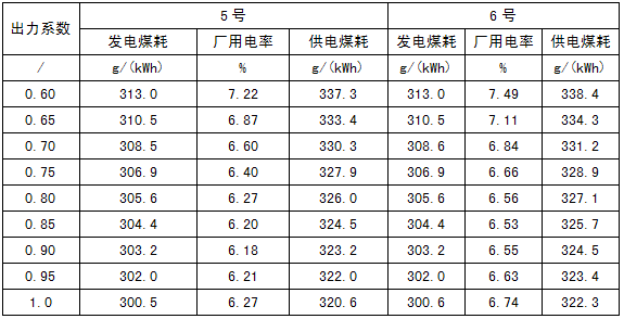 表2:云河發(fā)電有限公司5、6號(hào)機(jī)組各負(fù)荷率下經(jīng)濟(jì)性指標(biāo)預(yù)計(jì)值