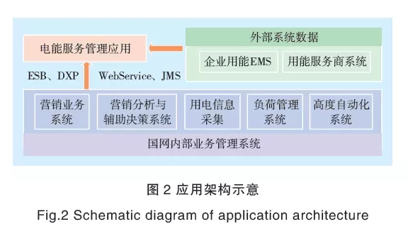 對于國網(wǎng)內(nèi)部業(yè)務(wù)管理系統(tǒng),總部及省級平臺均可與營銷業(yè)務(wù)系統(tǒng)、營銷分析與輔助決策系統(tǒng)、用電信息采集系統(tǒng)、負(fù)荷管理系統(tǒng)、調(diào)度自動化系統(tǒng)實(shí)現(xiàn)對接。平臺與各內(nèi)部業(yè)務(wù)系統(tǒng)通過Webservice、Java信息服務(wù)(JavaMessageService,JMS)、數(shù)據(jù)復(fù)制等方式進(jìn)行集成,依據(jù)國網(wǎng)相關(guān)數(shù)據(jù)交換標(biāo)準(zhǔn),通過企業(yè)服務(wù)總線(EnterpriseServiceBus,ESB)、數(shù)據(jù)交換平臺(DataExchangePlatform,DXP)獲取相關(guān)業(yè)務(wù)系統(tǒng)的數(shù)據(jù)。