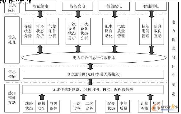 目前,智能電網和物聯(lián)網產業(yè)的發(fā)展均被提升到國家經濟發(fā)展的戰(zhàn)略決策層面,如何將智能電網和物聯(lián)網有機地結合起來是電力發(fā)展中需要解決的重要問題。將物聯(lián)網引入新一代智能電網信息通信技術(ICT)平臺中,不應是對當前電力通信網的重構,而是在現(xiàn)有各種網絡充分發(fā)展的基礎上,利用傳感器網絡擴展物與物之間的直接通信方式,從而降低電網生產環(huán)節(jié)中的人工參與度,提升電網的安全系數(shù)。與此同時,還應利用物聯(lián)網異構融合、兼容開放、自組織自愈等突出特點,與互聯(lián)網緊密結合,實現(xiàn)多種網絡的互聯(lián)互通,實現(xiàn)電網與社會的相互感知與互動?;谖锫?lián)網的應用能夠極大地拓寬現(xiàn)有電力通信網的業(yè)務范圍,提高電力系統(tǒng)的安全性和抗故障、御災害能力,實現(xiàn)與用戶的信息交互,最終達成智能電網節(jié)能減排、兼容互動、安全可靠的目標。