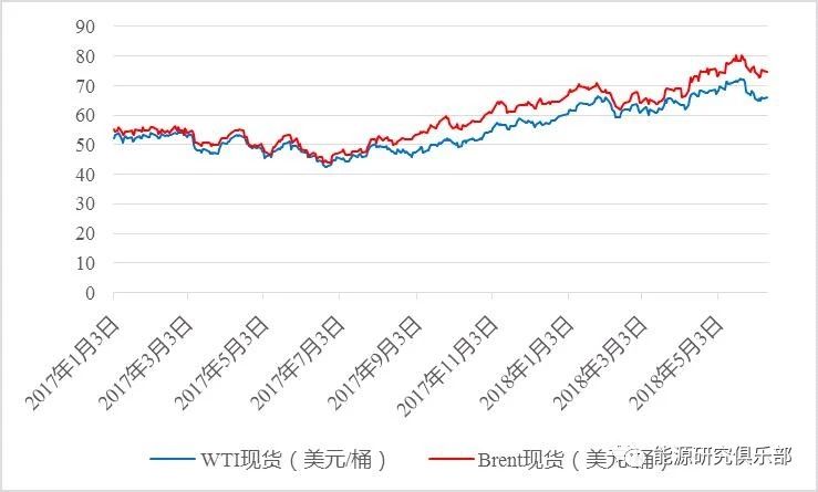 上半年國際原油價格先漲后跌。受主要產(chǎn)油國持續(xù)減產(chǎn)、中東地區(qū)地緣政治沖突升級、美國原油庫存持續(xù)下降等影響,布倫特油價在1月回升突破70美元/桶,至6月累計上漲16%。伴隨美國原油日產(chǎn)量不斷刷新紀錄高點,國際油價呈現(xiàn)高位震蕩。