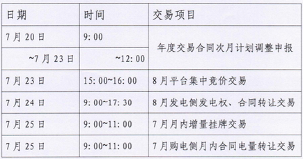 對月度交易組織時間順序進行調(diào)整優(yōu)化:每月依次進行年度交易合同次月及后續(xù)月份分解計劃調(diào)整、次月平臺競價交易、發(fā)電側發(fā)電權及次月合同電量轉讓交易、月內(nèi)增量掛牌交易、購電側月內(nèi)合同電量轉讓交易。
