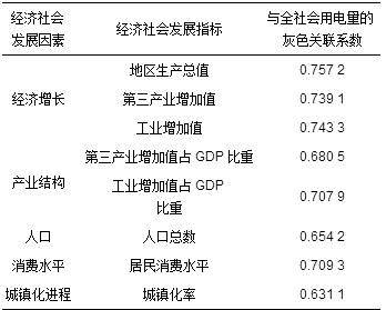 表 1 全社會(huì)用電量與經(jīng)濟(jì)社會(huì)發(fā)展指標(biāo)的灰色關(guān)聯(lián)系數(shù)