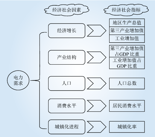 圖 1 影響全社會(huì)電力需求的主要經(jīng)濟(jì)社會(huì)發(fā)展指標(biāo)