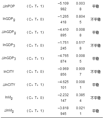 表 2 各變量的平穩(wěn)性檢驗(yàn)結(jié)果