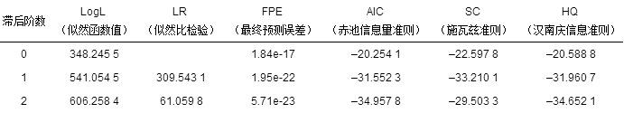 表 3 最優(yōu)滯后階數(shù)