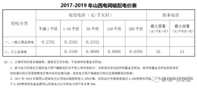 輸配電價(jià):山西電網(wǎng) 2017-2019 年監(jiān)管周期內(nèi)分電壓等級(jí)輸配電價(jià)詳見(jiàn)附件 1。晉能電力集團(tuán)輸配電價(jià)按山西電網(wǎng)輸配電價(jià)標(biāo)準(zhǔn)執(zhí)行。