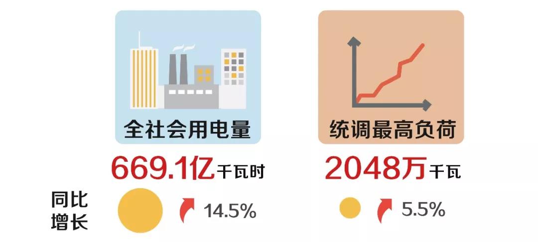 2018年1~3季度,重慶市用電需求保持增長態(tài)勢。截至9月底,全社會用電量669.1億千瓦時,同比增長14.5%;統(tǒng)調(diào)最高負荷2048萬千瓦,同比增長5.5%。