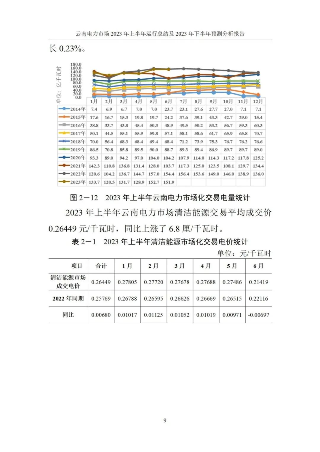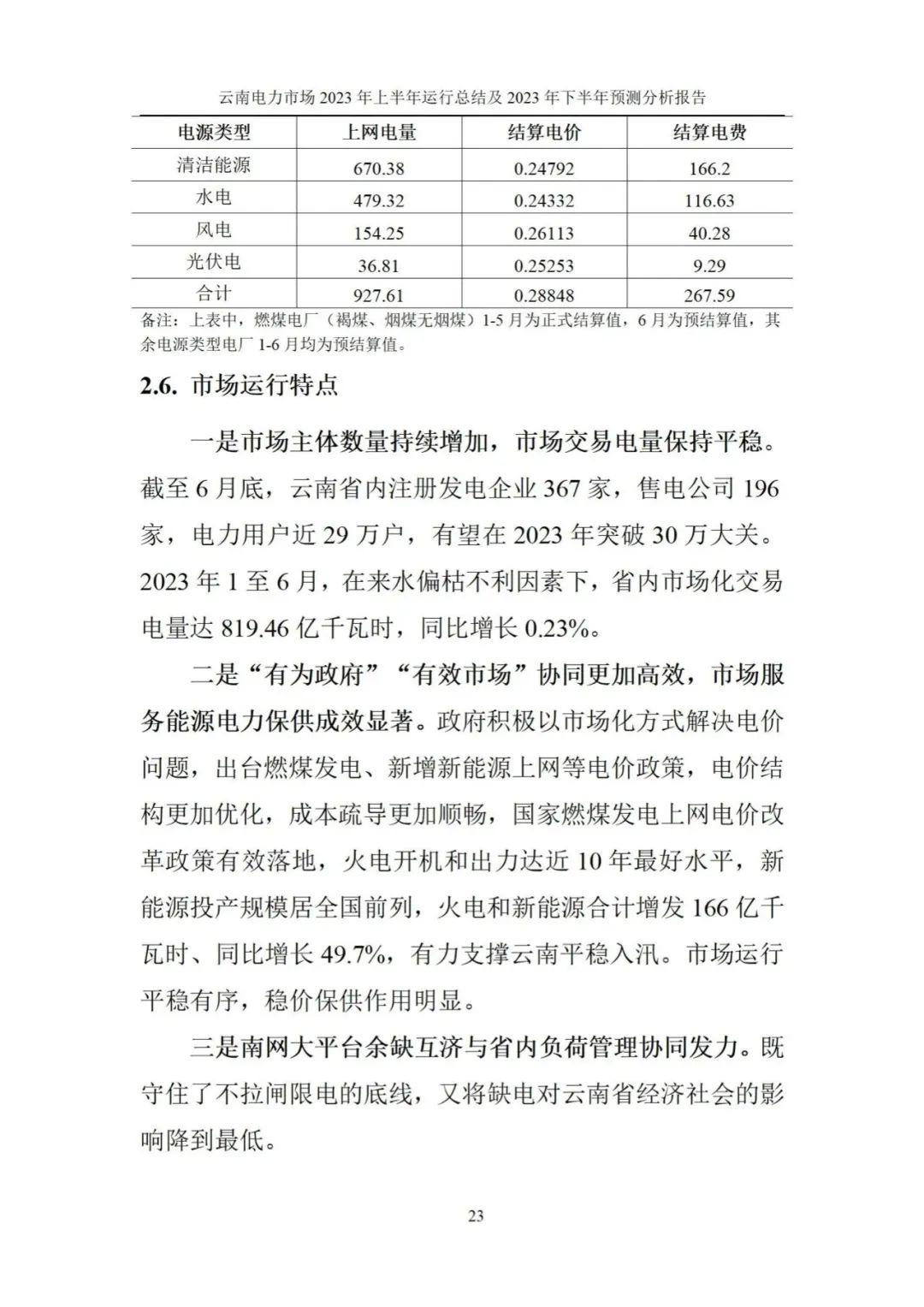 日前昆明電力交易中心發(fā)布云南電力市場(chǎng)2023年上半年運(yùn)行總結(jié)及2023年下半年預(yù)測(cè)分析報(bào)告。報(bào)告顯示: