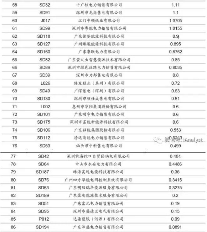 本次交易,售電公司成交總規(guī)模為815億度,占雙邊直接交易總規(guī)模的94%。其中粵電電力售電公司拔得頭籌成交量。