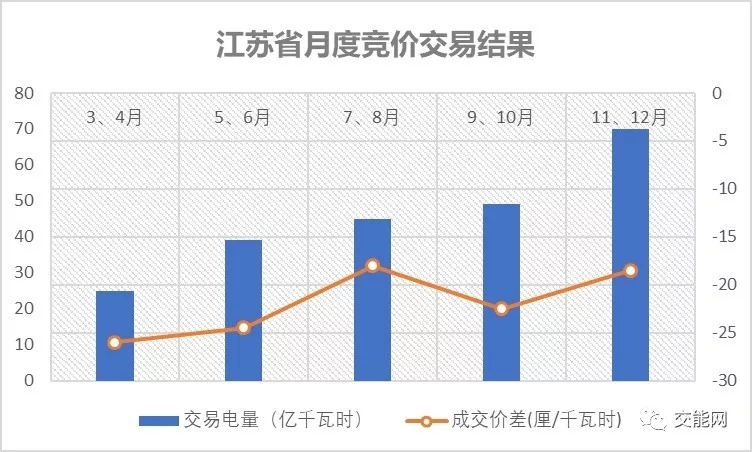 江蘇省在過去一年,從三月份起每?jī)蓚€(gè)月進(jìn)行一次月度競(jìng)價(jià)交易,從上表可以看出,其交易電量呈線性持續(xù)增加。