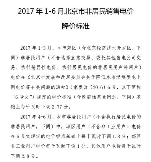 北京調(diào)電價(jià):銷售電價(jià)每千瓦時(shí)降低1.42分