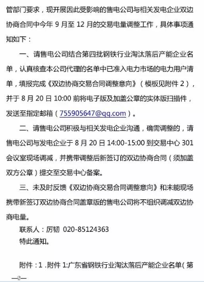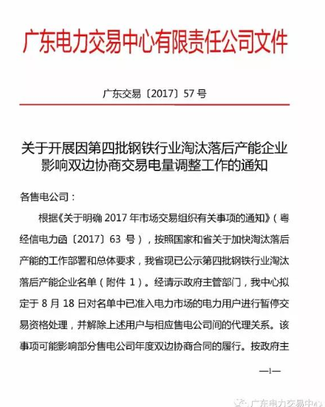 廣東第四批鋼鐵行業(yè)淘汰落后產(chǎn)能企業(yè)影響雙邊協(xié)商交易電量調(diào)整工作