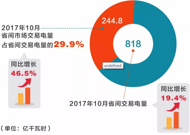 10月,省間交易電量完成818億千瓦時,同比增長19.4%。省間市場交易電量完成244.8億千瓦時,同比增長46.5%,占省間交易電量的29.9%,其中,省間電力直接交易電量96.4億千瓦時。