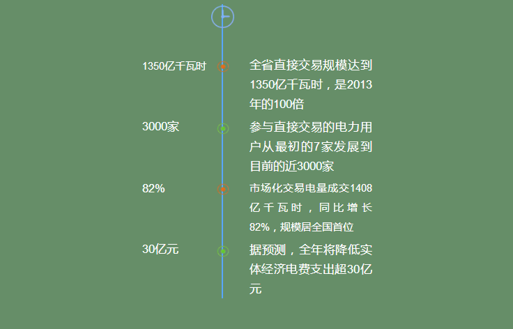 首次省內(nèi)集中競價交易成交規(guī)模50億千瓦時;建立直接交易月度市場定期開市機(jī)制,組織5次月度集中競價交易,成交電量228億千瓦時,降低用戶購電成本4.813億元;2017年直接交易規(guī)模達(dá)到1350億千瓦時,是2013年直接交易量的100倍,將為用戶節(jié)約購電成本超30億元……這是黨的十八大以來江蘇電力交易取得的成果。