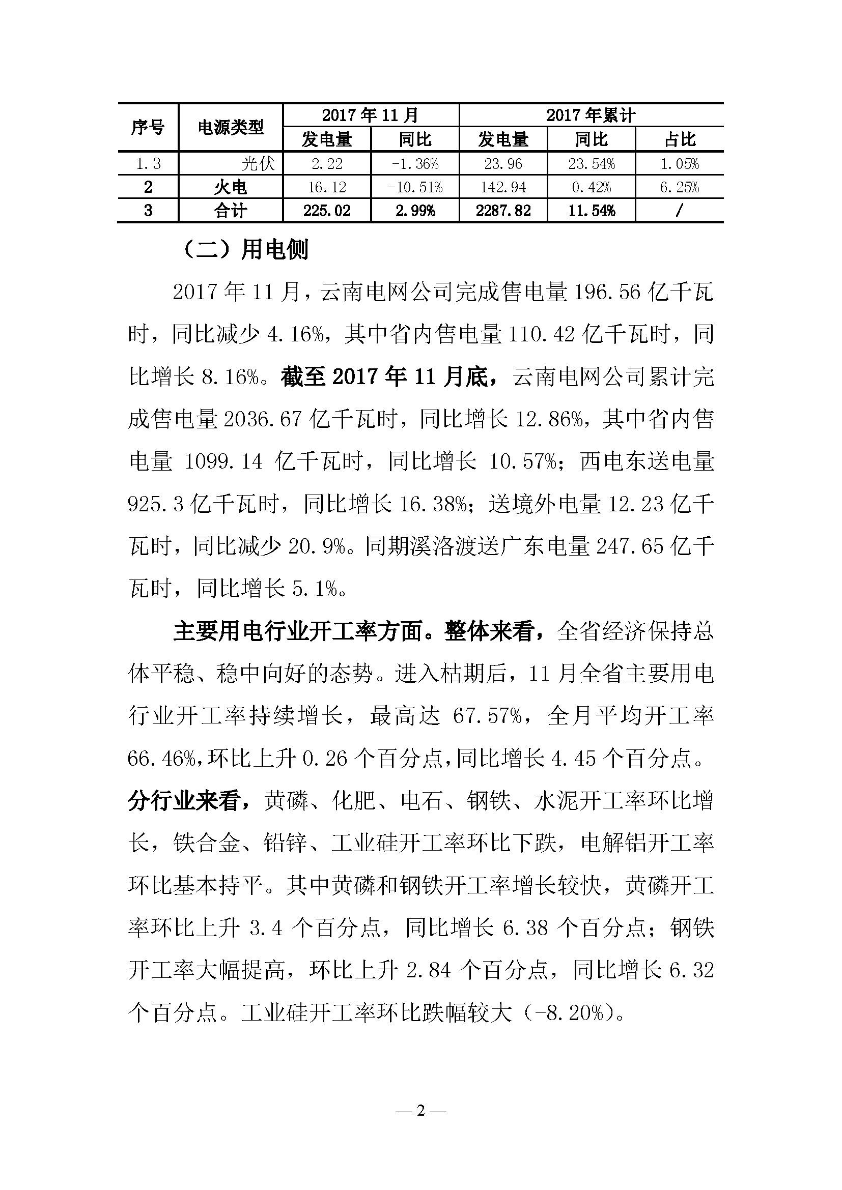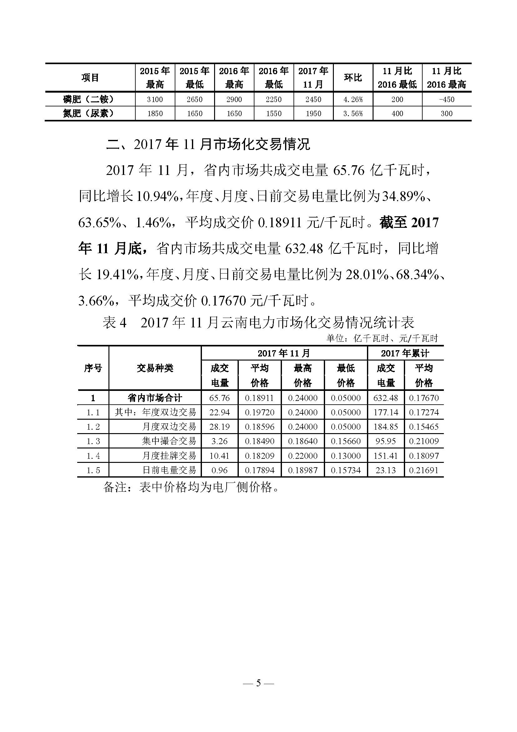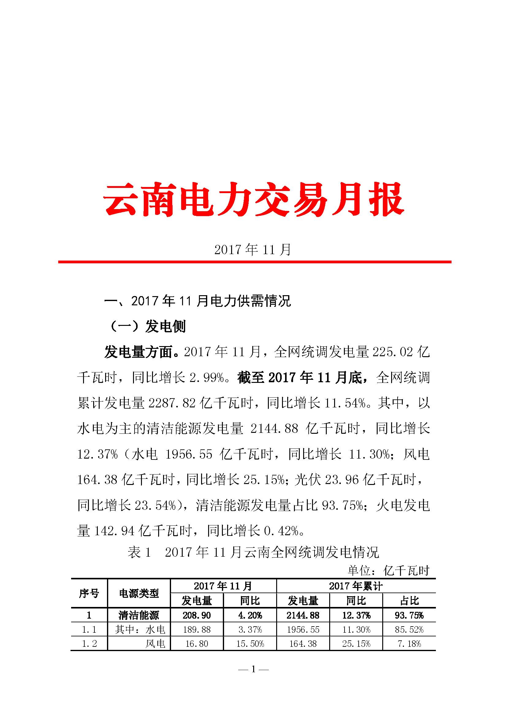 昆明電力交易中心日前發(fā)布了云南電力交易月報(bào)(2017年11月)。11月,云南電網(wǎng)公司完成售電量196 56億千瓦時(shí),同比減少4 16%,其中省內(nèi)售電量110 42億千瓦時(shí),同比增長8 16%。截至2017年11月底,云南電網(wǎng)公司累計(jì)