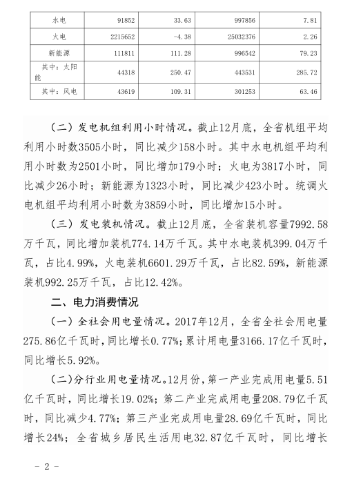 國(guó)家能源局河南監(jiān)管辦日前發(fā)布了2017年12月河南省電力供需情況通報(bào),2017年12月,河南省全社會(huì)用電量275.86億千瓦時(shí),同比增長(zhǎng)0.77%;累計(jì)用電量3166.17億千瓦時(shí),同比增長(zhǎng)5.92%。全省發(fā)電量241.93億千瓦時(shí),同比減少0.8%,累計(jì)發(fā)電量2702.68億千瓦時(shí),同比增長(zhǎng)4.1%。