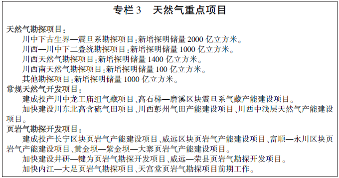 加快推動川中、川西和川東北常規(guī)天然氣勘探開發(fā),川南頁巖氣資源調(diào)查和勘探開發(fā)。到2020年,新增常規(guī)天然氣探明儲量6500億立方米,天然氣產(chǎn)量達到450億立方米(其中頁巖氣100億立方米)。