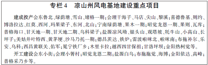 1.風電。優(yōu)化風電開發(fā)布局,總量控制,適度開發(fā),依據(jù)國家已批準實施的涼山州風電基地規(guī)劃,進一步優(yōu)化建設(shè)時序,把握好開發(fā)節(jié)奏。盆周山地等其他區(qū)域因地制宜、分散式適度開發(fā)風電。加強風電項目管理,深化、細化風能資源勘測,優(yōu)化微觀選址設(shè)計,提升風電設(shè)備質(zhì)量和運行維護水平,提高風能利用效率,促進風電成本下降,減少對環(huán)境的影響。到2020年,全省風電建成并網(wǎng)規(guī)模達到600萬千瓦,其中涼山州風電基地建成并網(wǎng)453萬千瓦。