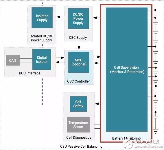 如果說MaximIntegrated提供的是高性能“單品”,TexasInstruments(TI)提供的則一道“套餐”。基于其TI的bq76PL455A-Q1集成式16節(jié)電池監(jiān)視和保護器件,可搭建一套完整的被動電池均衡解決方案。bq76PL455A-Q1可監(jiān)視和檢測包括過壓、欠壓、過熱和通信故障等多種故障,最多允許十六個bq76PL455A-Q1器件通過單個UART接口與主機通信。