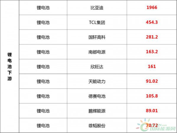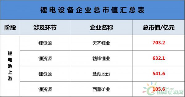 如圖所示,總市值超過(guò)500億的鋰電企業(yè)有4家,其中有3家均為鋰電池上游企業(yè),為天齊鋰業(yè)、贛鋒鋰業(yè)、鹽湖股份,1家為下游企業(yè)比亞迪,市值達(dá)1966億,有兩家鋰電企業(yè)市值有望沖破500億,分別為中信國(guó)安和TCL集團(tuán)。市值超過(guò)100億的企業(yè)有22家,占鋰電企業(yè)的76%,其余企業(yè)有望突破百億。