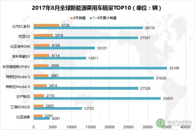 2017年8月全球新能源乘用車銷量TOP10