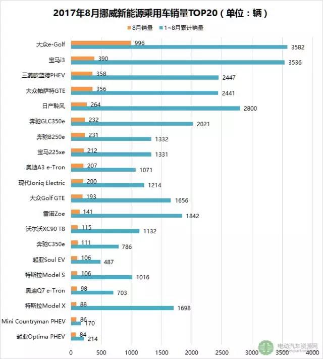 2017年8月,挪威新能源乘用車銷售了五千余臺, 1-8月新能源乘用車?yán)塾?jì)銷量3.6萬臺。從挪威汽車市場來看,新能源乘用車已經(jīng)占據(jù)了高達(dá)35%的市場份額。