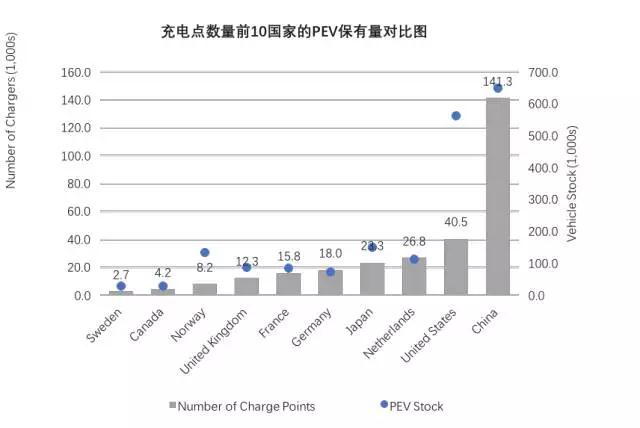 以上選取了充電基礎(chǔ)設(shè)施數(shù)量排名前10的國(guó)家,對(duì)比這些國(guó)家PEV的保有量,可以發(fā)現(xiàn):