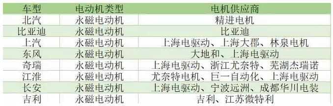 國內(nèi)乘用車電機(jī)類型及供應(yīng)商