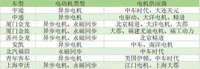國內(nèi)商用車電機(jī)類型及供應(yīng)商