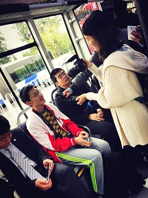 記者體驗(yàn)時,遇到公交愛好者——一名學(xué)生知道新車上路,特意體驗(yàn)、拍照,并對公交車如數(shù)家珍。蘇南/攝