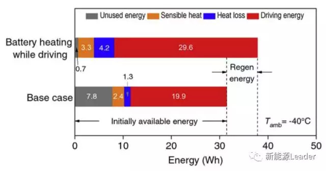下圖為實(shí)驗(yàn)組和對(duì)照組電池在使用的過(guò)程中各個(gè)部分消耗的能量的占比,可以看到相比于對(duì)照組,實(shí)驗(yàn)組能夠用于駕駛(紅色)的能量大大增多,這其中很重要的一部分原因是由于實(shí)驗(yàn)組電池的溫度升高很快,因此回收的剎車能量要遠(yuǎn)遠(yuǎn)多于對(duì)照組,因此明顯提高汽車的駕駛里程。