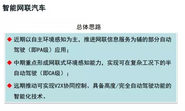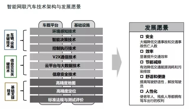 智能網(wǎng)聯(lián)汽車技術(shù)路線重點(diǎn)在于開展以環(huán)境感知技術(shù),高精度定位與地圖,車載終端機(jī)人機(jī)接口(HMI)產(chǎn)品,集成控制及執(zhí)行系統(tǒng)為代表的關(guān)鍵零部件技術(shù)研究,開展以多源信息融合技術(shù),車輛協(xié)同控制技術(shù),通信與信息交互平臺技術(shù),電子電氣架構(gòu),信息安全技術(shù),人機(jī)交互與共駕駛技術(shù),道路基礎(chǔ)設(shè)施,標(biāo)準(zhǔn)法規(guī)等為代表的共性關(guān)鍵技術(shù)研究。