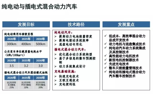 純電動和插電式混合動力汽車技術(shù)路線重點(diǎn)在于:為了實(shí)現(xiàn)純電動汽車和插電式混合動力汽車的大批量市場推廣,形成完善的整車、關(guān)鍵總成生產(chǎn)體系和社會生態(tài)環(huán)境;以降低整車成本、提升整車技術(shù)先進(jìn)性為目標(biāo)、突破先進(jìn)驅(qū)動電機(jī)和動力電池等關(guān)鍵零部件開發(fā)技術(shù),加快充電設(shè)備技術(shù)研究以充電基礎(chǔ)設(shè)施推廣普及。